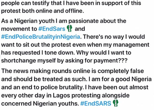 I have seen tweets going around about me Requesting for money to support thee #endsars protest with my people in Bayelsa.
